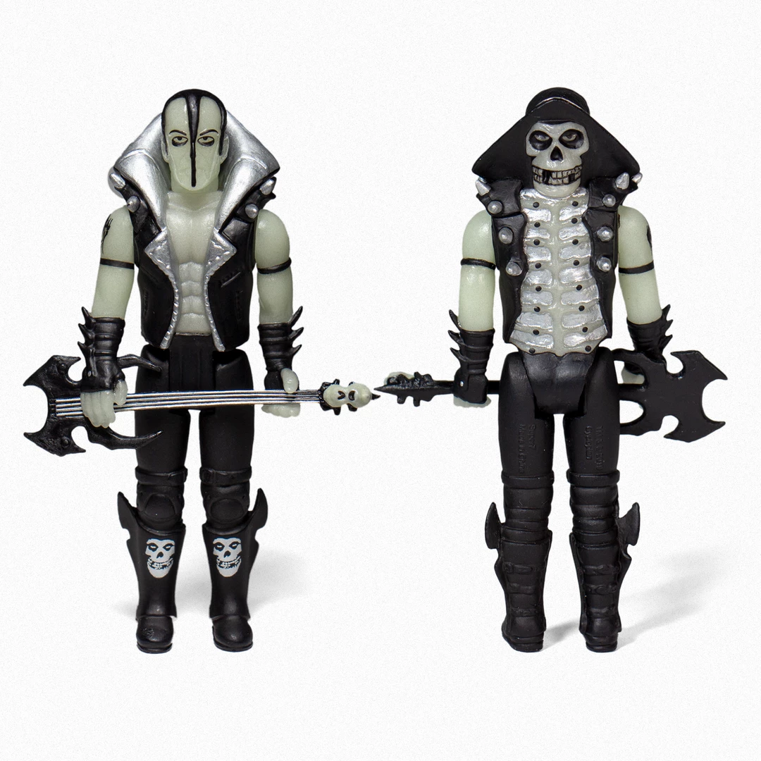 “Devilock!” The official Super7 x Misfits – Jerry Only GLOW-IN-THE-DARK 3.75″ ReAction Figure. Jerry comes armed with his Devastator bass and wearing his terrifying spiked Fiend vest!