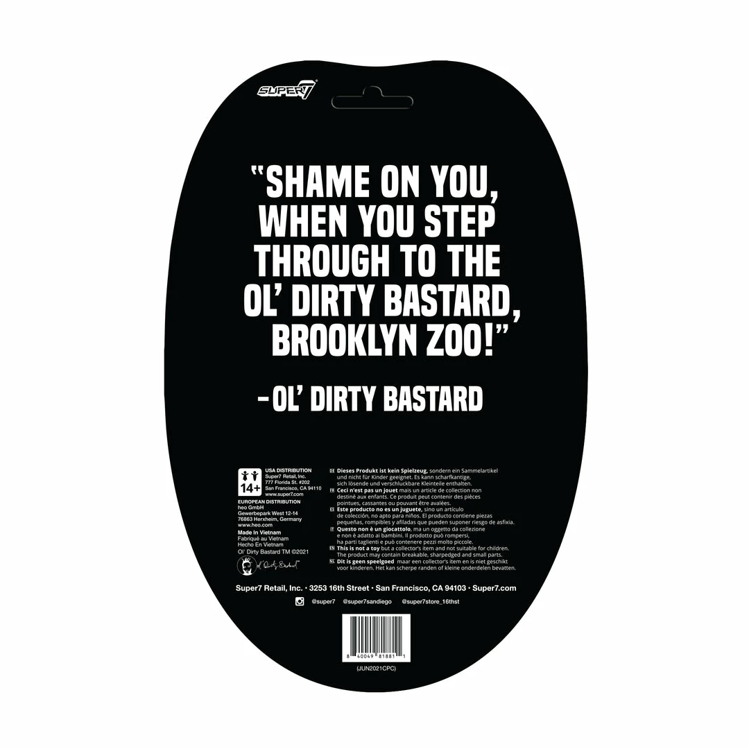 He’s the one man army that keeps MC’s lookin’ out! This 3.75” articulated ODB ReAction Figure pays homage to the Brooklyn Zoo music video, featuring his tan jacket, sunglasses (with missing lens), and gold grillz, and includes a microphone accessory. Packaged on a special mouth-shaped die-cut cardback with holographic and metallic foil hits, the ODB “Brooklyn Zoo” ReAction Figure deserves a spot in your collection of Hip-Hop legends!