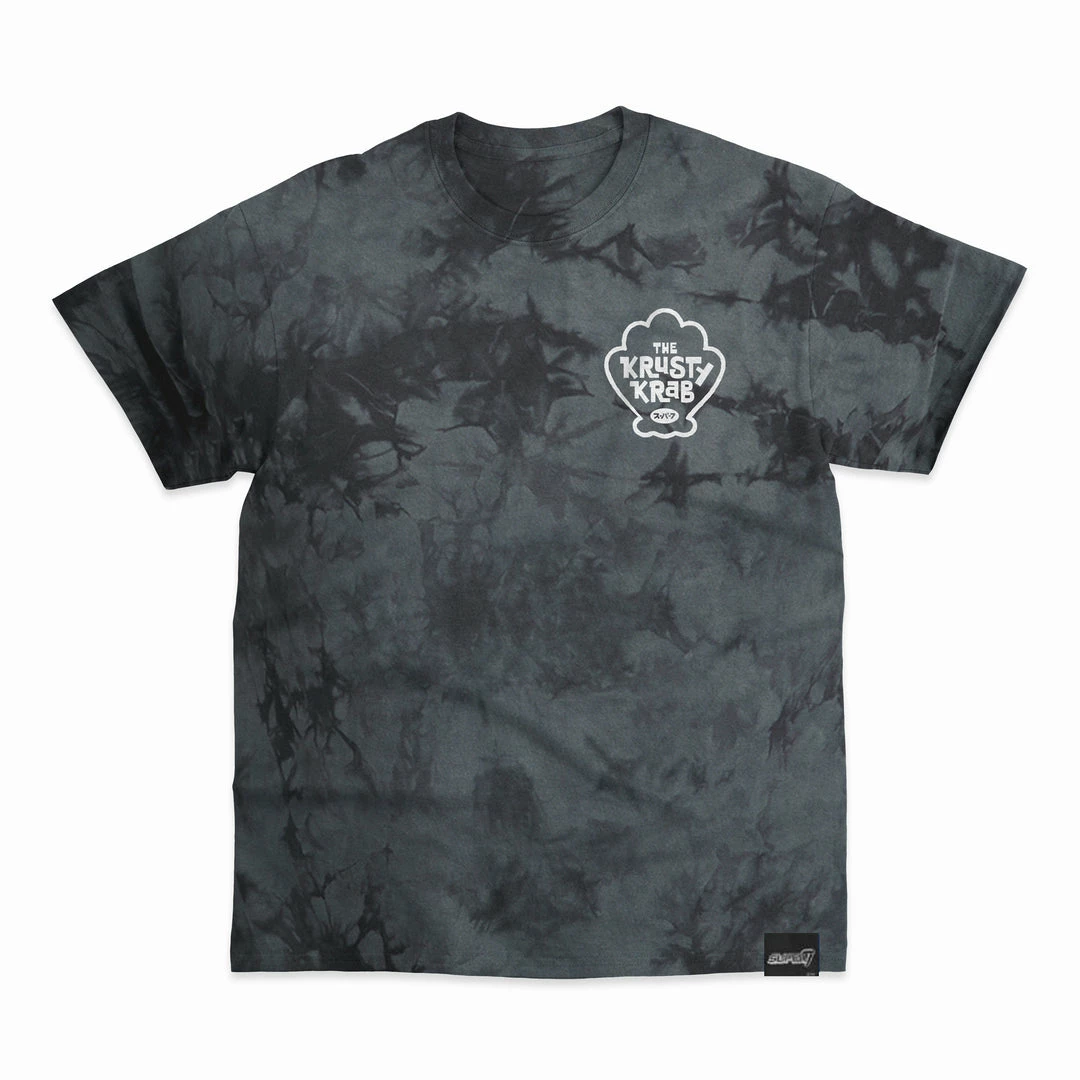 The SpongeBob Krusty Krab Meal T-Shirt! Featuring a 2-sided Super7 design inspired by original fast food art from back in The Day! Perfect for WFH Zoom calls and physically distanced walks in the sunshine! Available in unisex sizes SM – 3X, Tee color: Black tie dye 100% cotton machine wash/tumble dry.