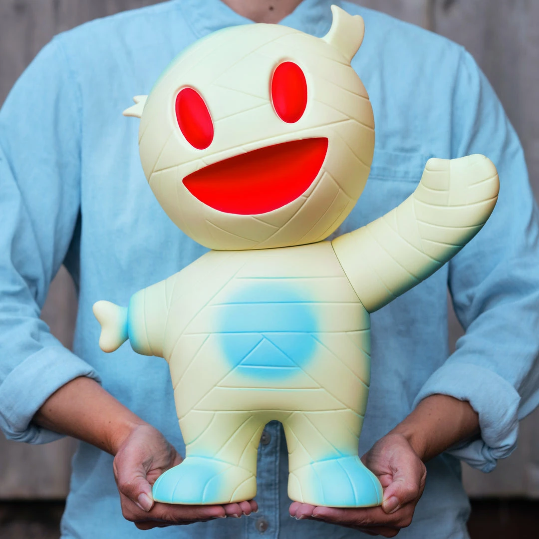 Super7’s loveable mascot Mummy Boy lost his arm (and his mind) long ago but he’s just happy to be here. We are happy Mummy Boy is still with us as well! If you’ve followed Super7 for any amount of time you know that he does not take his duties as our ambassador to the real world lightly. This 16” poseable Supersize figure features premium vinyl construction with blue paint detail and a glow-in-the-dark body. The color way also matches the very first Mummy Boy Japanese vinyl figure that came out in 2008. Our buddy Mummy Boy has grown in size just like he will in your heart! Add the Supersize Mummy Boy to your collection today.