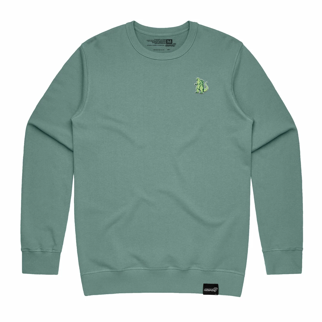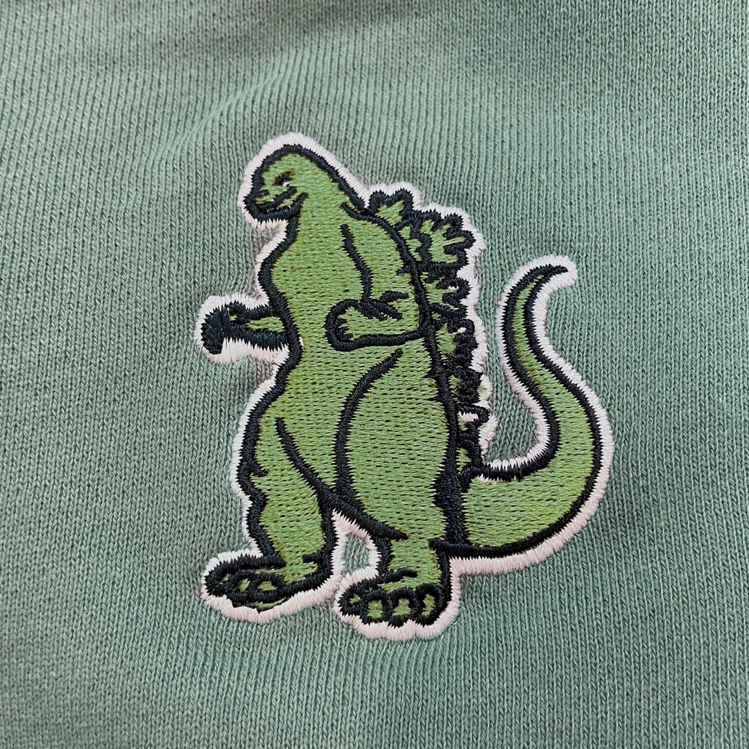 Godzilla may not usually be subtle in any form, but with Super7’s new Godzilla crewneck, you can rock that big kaiju attitude without totally overshadowing the rest of your ensemble! Featuring a small (but MIGHTY!) Godzilla embroidered on the left chest area that is inspired by the vintage Godzilla movies, this officially licensed 100% cotton, long-sleeved, sage green crewneck sweatshirt is perfect for keeping comfortably toasty while you re-watch the King of Monsters incinerate all that stand against him. Available in sizes S-3X.